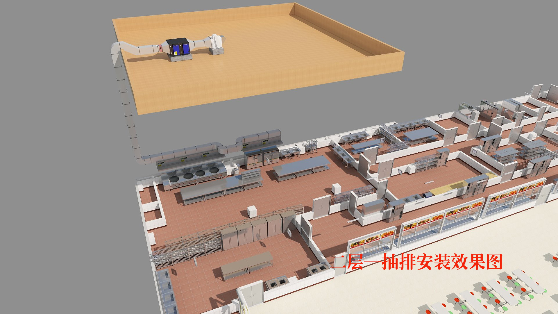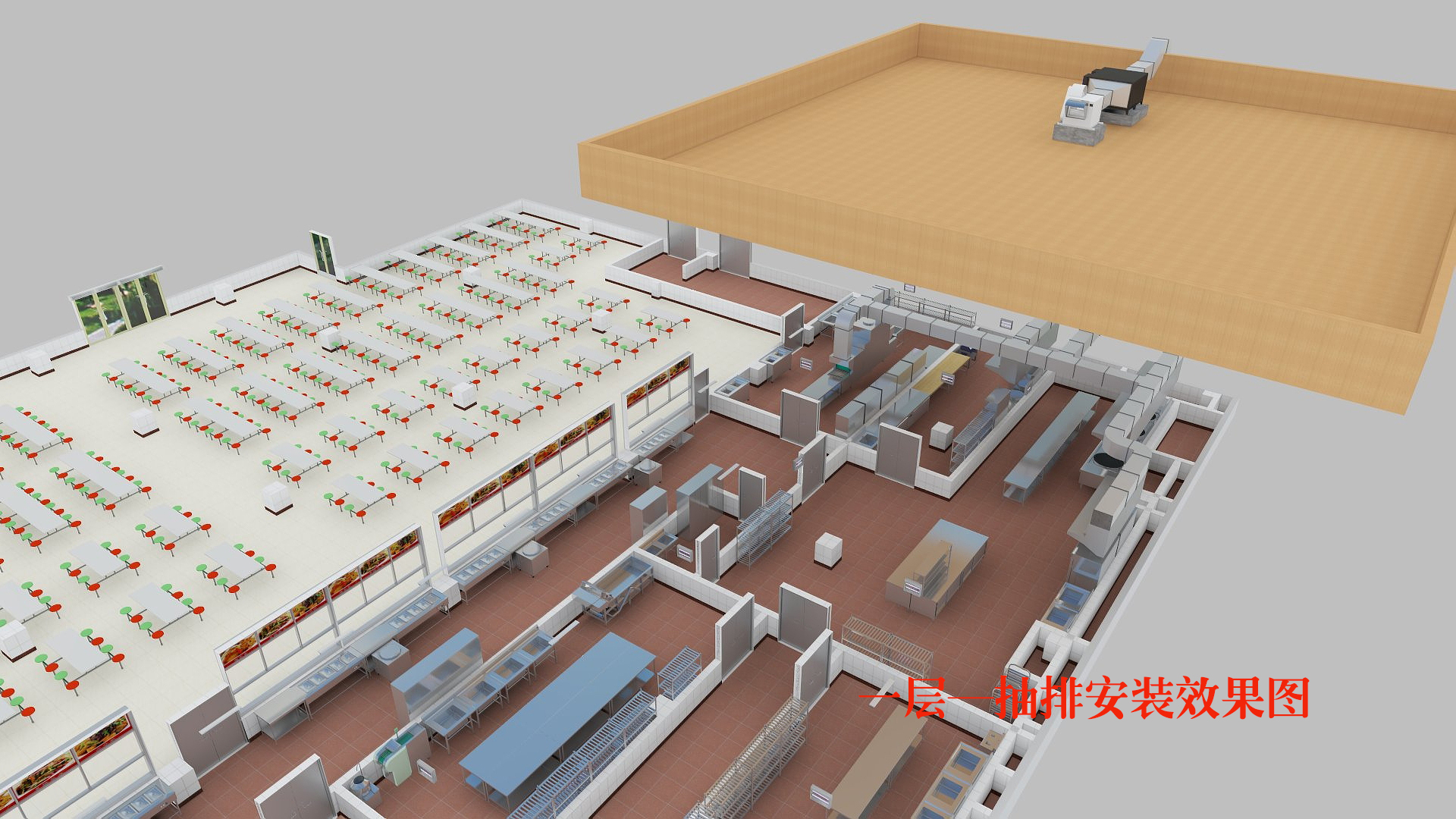 ?、茉诔榕胖饕蜔煹耐瑫r(shí),不可忽視烤箱、蒸箱、蒸汽鍋及蒸汽消毒柜、洗碗機(jī)等產(chǎn)生的濁氣、廢氣,要保證所有煙氣不在廚房區(qū)域彌漫和滯留。