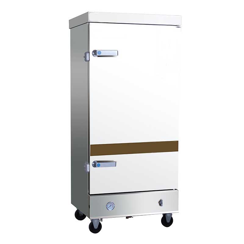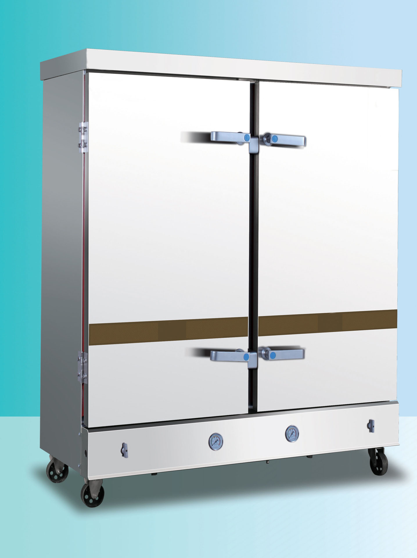 蒸飯柜,又稱蒸飯車、蒸飯機或蒸飯箱,是指利用電、燃氣發(fā)熱,蒸煮米飯的大型廚房蒸煮設(shè)備。為了方便移動,在蒸飯柜下方安裝有萬向輪,故外形似車。車身為柜體狀,材質(zhì)為不銹鋼,一般多用304和201不銹鋼制造。蒸飯柜多用于酒店、部隊、學校工廠等大型食堂。蒸飯柜除了用來蒸米飯、饅頭、包子以外,還可蒸豬肉、雞鴨等肉食,還有專門用來蒸海鮮的海鮮蒸柜,也可以燉湯。那么,蒸飯柜都有哪些種類呢,這些蒸飯柜的又都分別適用于怎樣的范圍呢?作為專業(yè)的四川中餐廚房設(shè)備廠家,現(xiàn)在我們就和大家分享相關(guān)的知識。