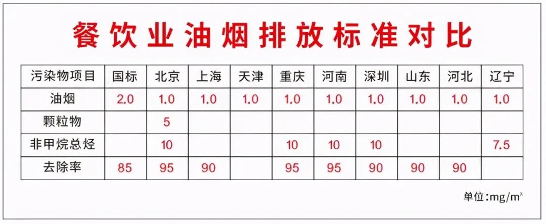 而國內(nèi)一些地區(qū)油煙排放標(biāo)準(zhǔn)不允許排放濃度超過1.0mg/m3,北上廣深天津、重慶、河南等地區(qū),嚴(yán)格了一倍,安裝的油煙凈化器凈化效率達(dá)到90%—95%以上。