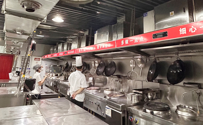 丹棱縣仕清園飯店位于我國大文豪蘇軾的故鄉(xiāng)眉山丹棱縣,是一家經(jīng)營大型餐飲服務(wù)的高端飯店。此飯店廚房工程全部由我公司建設(shè)完成。為了能夠滿足客戶的需要,我們前期派專業(yè)的項目經(jīng)理考察了現(xiàn)場,核實了圖紙尺寸和現(xiàn)場廚房空間尺寸,然后,根據(jù)廚房的實際情況以及業(yè)主對實際經(jīng)營的需要,并結(jié)合廚房的人員流動路線和對菜品加工工藝的要求,為客戶設(shè)計了個性化的飯店廚房方案。為了能夠滿足廚房高效的加工食材的需要,我們?yōu)榭蛻襞渲昧斯?jié)能雙炒雙吊灶和大鍋灶,這類設(shè)備不但熱效率高,而且節(jié)能;同時為了能夠有效的解決廚房的油煙排放和凈化問題,祛除廚房異味,我們?yōu)榭蛻籼峁┝宋夜拘乱淮?a href="/lists/38.html" target="_blank">油煙凈化一體機產(chǎn)品,該產(chǎn)品油煙凈化率在98%,能夠?qū)崿F(xiàn)目測無煙,除臭除味,輕松解決廚房油煙問題。由于我公司廚房工程經(jīng)驗豐富,熟悉各類廚房對設(shè)備工程的要求,周全考慮廚房的客觀情況,并且科學(xué)的規(guī)劃配置設(shè)備方案,讓我們的廚房方案很快就得到了客戶的認(rèn)可,并且快速的完成了工程項目??蛻粢炇胀觏椖恐?,對我們的工作非常滿意,贊不絕口,并且表示下次如何還需要廚房工程項目,會再次考慮我們的項目。