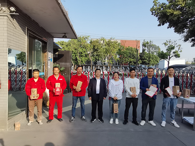 在各部門(mén)的負(fù)責(zé)人回顧完本部門(mén)的工作后,便開(kāi)始了頒獎(jiǎng)環(huán)節(jié)。獲獎(jiǎng)人員紛紛上臺(tái)領(lǐng)獎(jiǎng),并和公司領(lǐng)導(dǎo)合影。