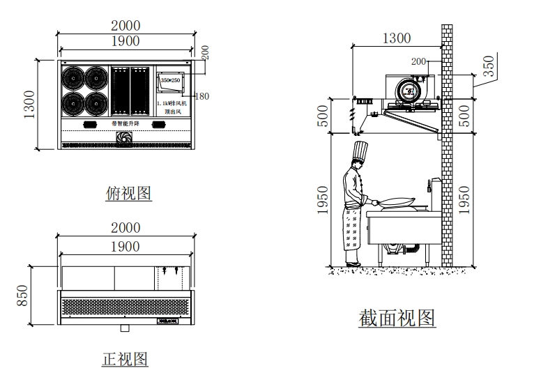 1.一體煙罩集前補(bǔ)新風(fēng)或風(fēng)幕、LED 照明、凈化、排風(fēng)、智能升降于一體。且具備耐溫、耐酸堿、阻燃、耐磨、耐拉等功能。有良好的防火性能和良好的機(jī)械強(qiáng)度。