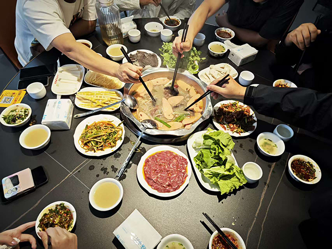 這也給了同事們品嘗沿途美食的機(jī)會(huì)。當(dāng)快到12點(diǎn)時(shí),全體人員便從高速路出來(lái),在一家牛肉館品嘗當(dāng)?shù)孛朗场Hw銷售部的人員齊聚一堂,有說(shuō)有笑,好不熱鬧鬧。