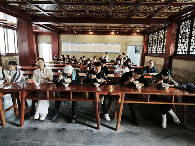 中午時(shí),大家又在寺廟體驗(yàn)齋飯。
